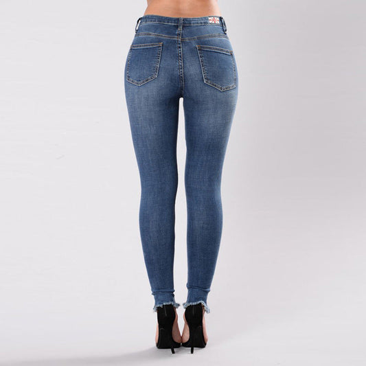 Fashion Washed Denim High Waist Stretch Slim Jeans