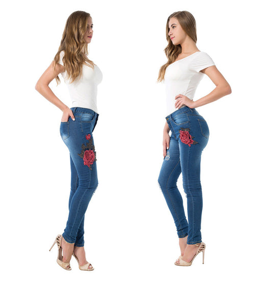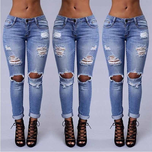 Low Waist Sky Blue Patchwork Skinny Tight Pencil Stretch Jeans