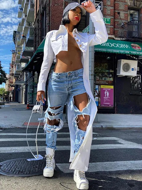 Streetwear Button Up Long Sleeve Asymmetrical Top