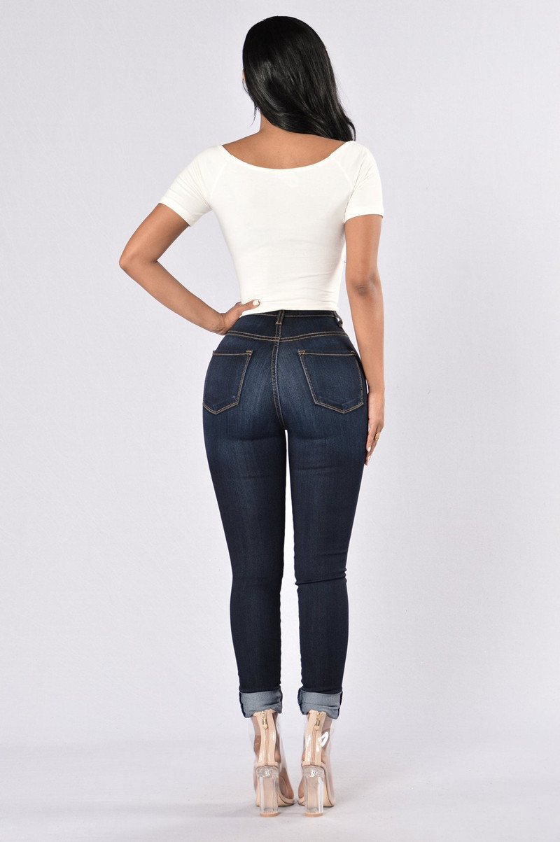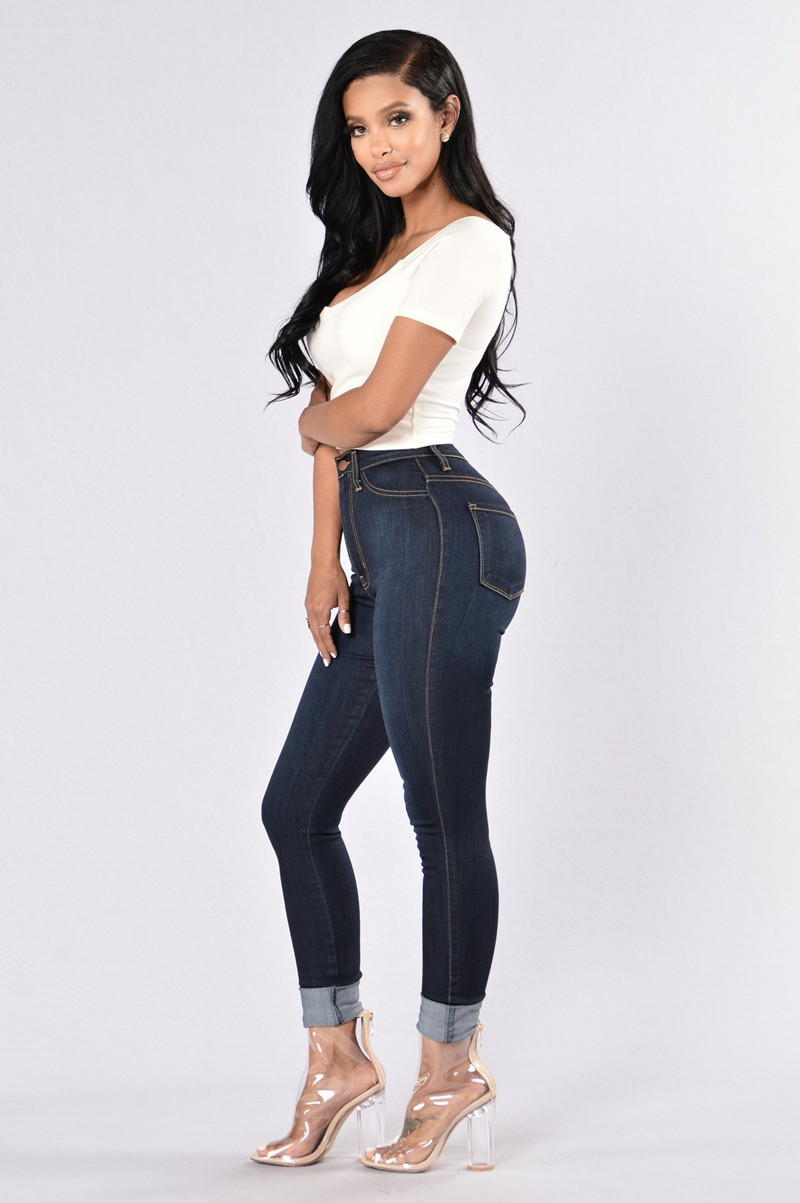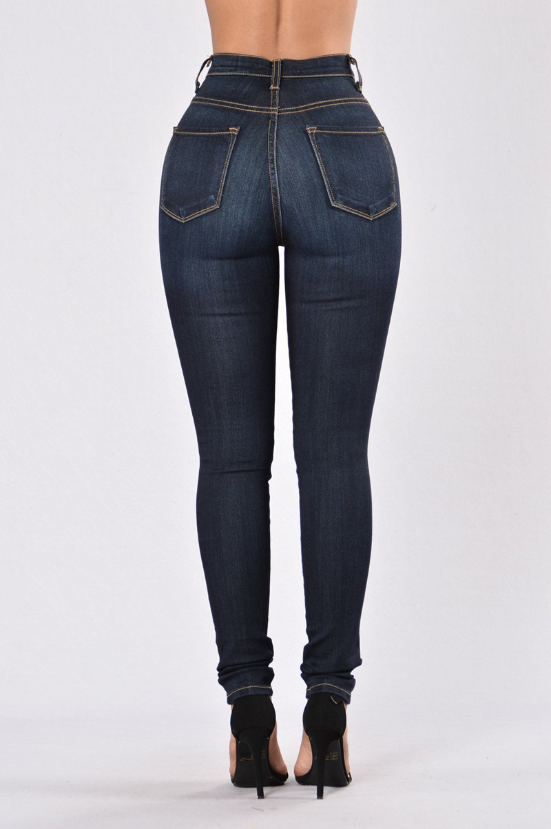 Jeans ajustados elásticos de cintura alta de mezclilla de moda